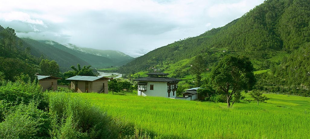 Nördlich des eindrücklichen Dzongs von Punakha erreicht der Gast via Hängebrück über den Mo Chu das Amankora Punakha. Das Resort beinhaltet ein traditionelles Bauernhaus, indem sich das geschmackvoll eingerichtete Restaurant, der gemütlichen