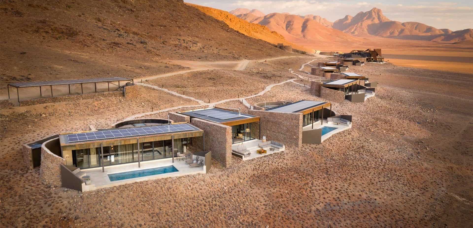 Eine der ikonischsten Lodges Namibias, eingebettet in die Dünenlandschaft der Namib-Wüste. Jede Suite ist ein architektonisches Meisterwerk aus Stein und Glas mit endlosem Blick in die Wüste – nachts funkelt der Sternenhimmel wie nirgends sonst auf der Welt.