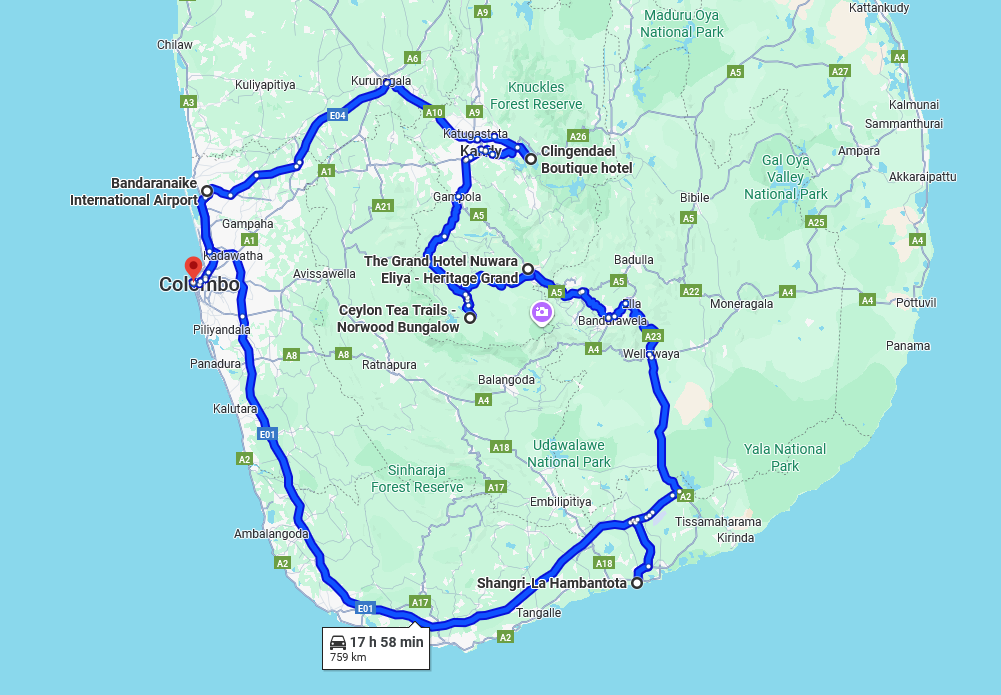 Route: Flughafen Colombo (Bandaranaike) → Hambantota