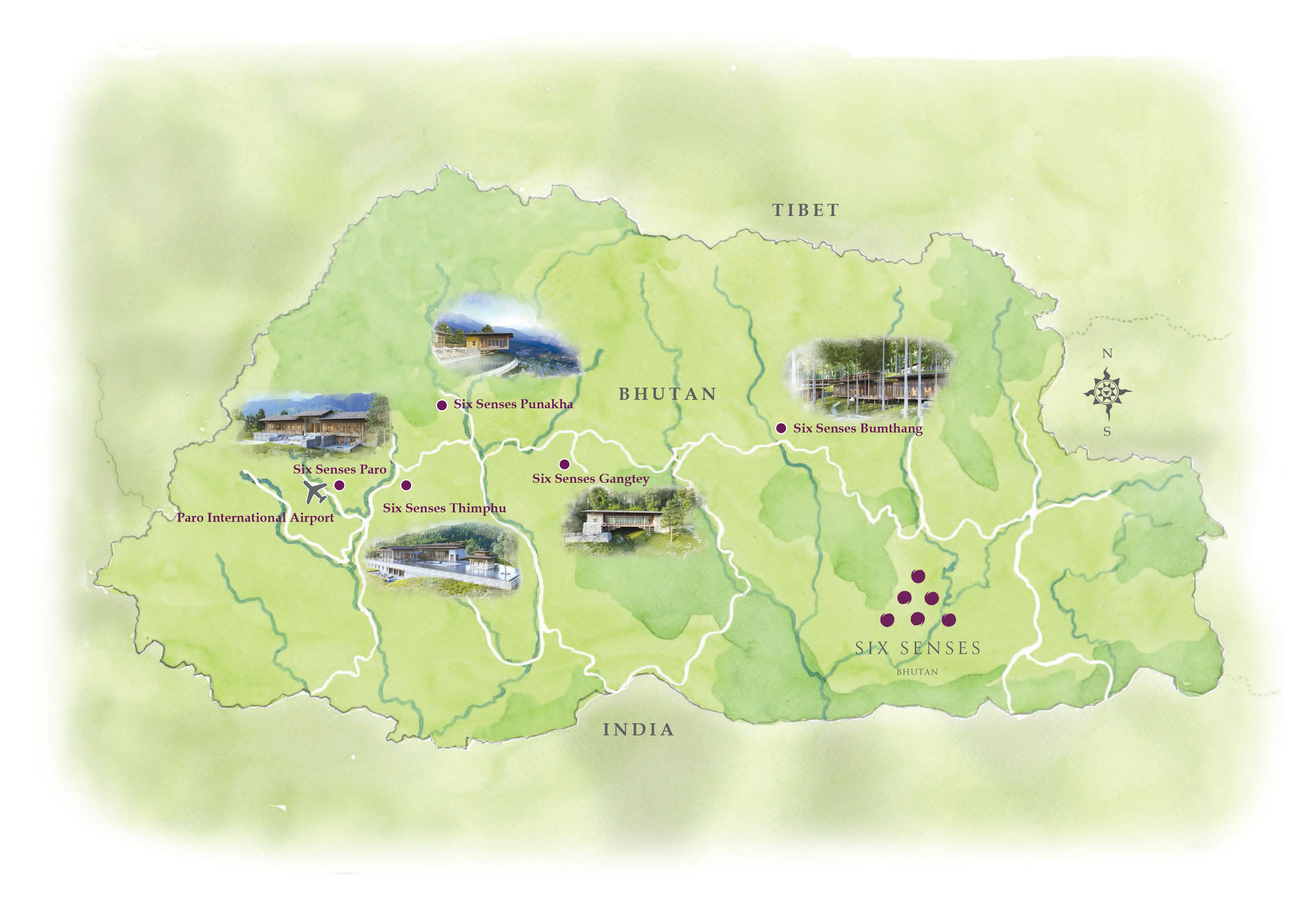 Die Hotelmarke eröffnete am 1. Februar 2019 das erste der fünf neuen Luxusresorts an ganz unterschiedlichen Plätzen des Landes, die unter dem Namen „Six Senses Bhutan“ vereint sind.
