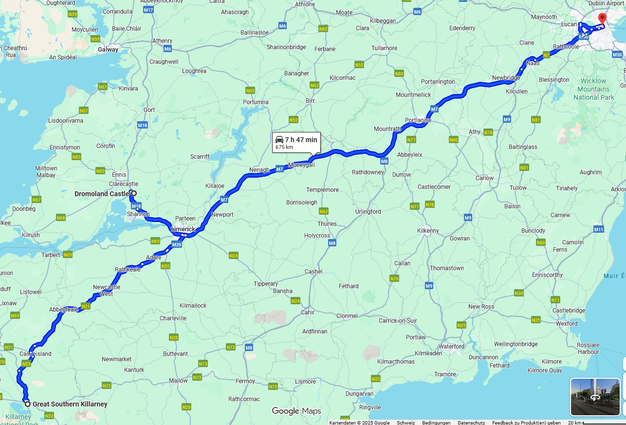 Die Fahrt dauert ca. 4 Stunden und führt durch grüne Landschaften, kleine Städte und typische irische Dörfer. Eine beeindruckende Reise quer über die Insel.
